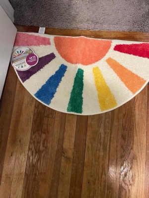 TOWN & COUNTRY PLAY Hello Sunshine Rainbow Sun Half Circle Shaped Bath Mat, Absorbent Tufted Floor Mat, Machine Washable, Multicolor, 32.7"x16.5"