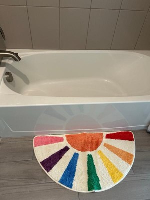 Product Name: TOWN & COUNTRY PLAY Hello Sunshine Rainbow Sun Half Circle Shaped Bath Mat, Absorbent Tufted Floor Mat, Machine Washable, Multicolor, 32.7"x16.5"