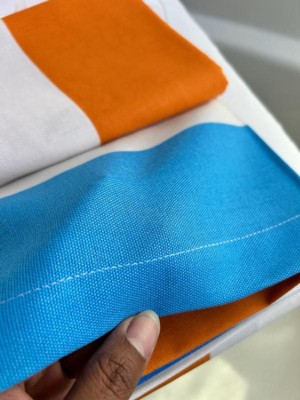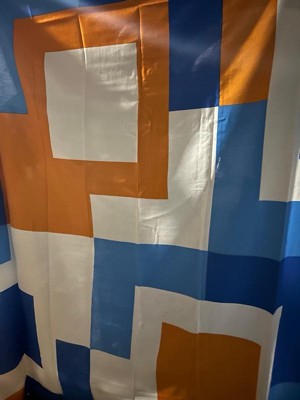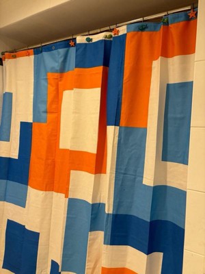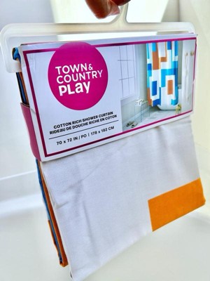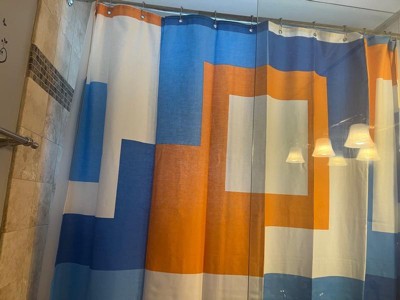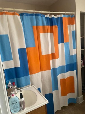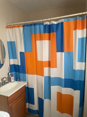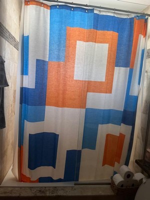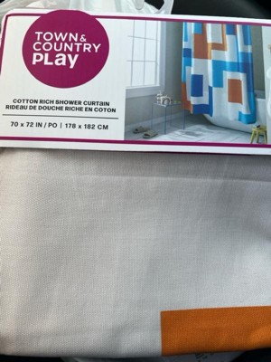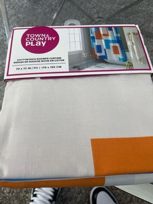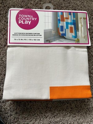[This review was collected as part of a promotion.] I couldn't be happier with the Town & Country Play Lucy Mid Century Squares Cotton-Rich Shower Curtain. From its cool and unique cotton fabric to its vibrant orange and blue colors, this curtain has completely transformed my small bathroom. Let's start with the fabric, the cotton-rich material feels luxurious and adds a touch of sophistication to my space. Not only does it look great, but it also feels very nice to the touch. To ensure durability and water resistance, I've paired it with a plastic shower curtain on the inside. It’s not just about looks for me functionality is key, especially in a small space. This Shower Curtain strikes the perfect balance between style and practicality. The cotton-rich fabric is breathable, allowing for adequate air circulation and maintains privacy. Plus, it’s generous in size and ensures full coverage, effectively keeping water contained within the shower area. Overall, this shower curtain is a must-have for anyone looking to elevate their bathroom decor. With its unique fabric, vibrant colors, and functional design, it's a true standout piece that adds personality and charm to any space. I highly recommend it to anyone seeking both style and functionality in their shower curtains. 🧡🩵🤍