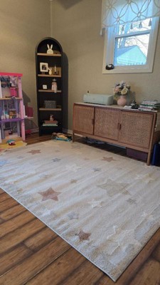 [This review was collected as part of a promotion.] This is the most beautiful addition in kids play area . It is so appealing and has adorable design. Definitely super soft. It is made up of very good quality material with very fine edges. It is literally adding stars to my kids play area. The color combination is so nice and subtle and complimenting my decor very well. Cleaning is hassle free. It has style , charm and comfort ,all these qualities making this rug my absolute favorite. I will surely recommend this to all fellows around me.
