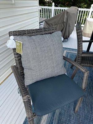 [This review was collected as part of a promotion.] This is a very cute pillow. It came nice and full and fluffy, not at all squished or misshapen. It isn’t the softest but that’s because it’s also fit for outside use which is pretty cool. I am going to check to see if they have brighter colors to use on my patio!