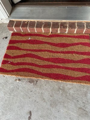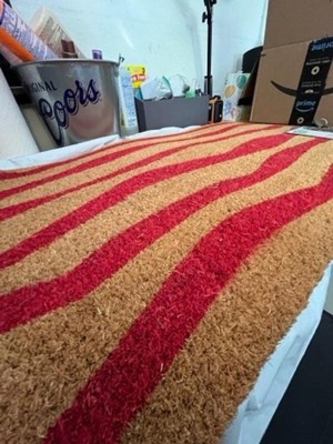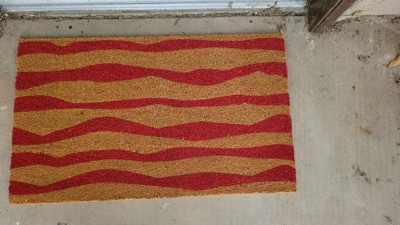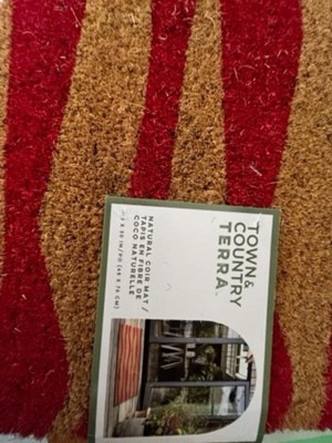 [This review was collected as part of a promotion.] I received the Town & Country Terra Ravine Abstract Mountain Outdoor Natural Coir Mat from Influenster for my honest review. The door mat I chose was the red 18"x30" mat. It's not flimsy. It's a stiff mat. There were a few indentations and some shedding. I placed the mat outside my garage door. Looks good! I would recommend it.