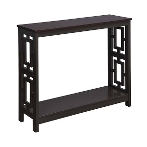 The Town Square Console Table with Shelf is the perfect piece to welcome guests into your home. This beautifully crafted hall table has so much display space and its own detail that will not detract from your living space. Crafted of MDF and finished with non lead based paint, this transitional table is built to last. Side panels featuring a simple Asian inspired design, showcases an open concept style that will Feng Shui any room in your house. The large tabletop and bottom shelf offer plenty of room to store your knickknacks and favorite framed memories. The modest style of the Town Square offers so much versatility in its usage, from your entryway to your living room and even behind your sofa, you will find that this table belongs in everyones home. Available in multiple finishes. Look for other unique Town Square pieces from Breighton Home. Each sold separately.