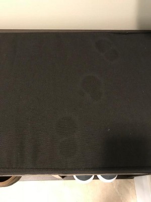 I love the bench but the cushion was stained, looks like grease stains on it, front and back. I ordered it a second time to get a better cushion and the replacement one also had a stained cushion! :( Super disappointed. I am now waiting to see if the manufacturer can send me a non-stained replacement cushion. It zips on the back but if you try to take the fabric off to wash it, the cushion doesn't come out easily as they placed the zipper half way down the back, so it rips the seam. It's just frustrating all the way around and too bad because I do like it. If the fabric wasn't stained it would be great.