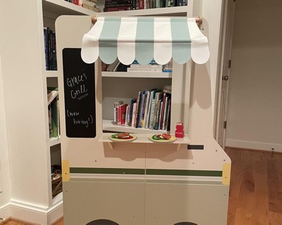 This food truck has a lot of features, but I really like that it has additional space to add in your own play kitchen items. My two year old son is thrilled!