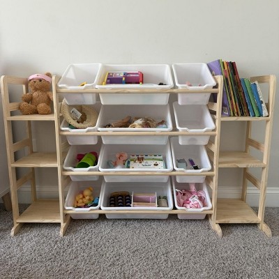 Perfect for our playroom! I love that it combines shelves for books with bins for small toys. Keeps everything in one place and looks nice as decor.