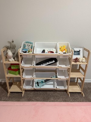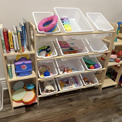 Love this toy organizer! The bins are the perfect size and keep everything super tidy. My daughter can grab what she wants and put it back easily. It looks cute in the playroom, feels sturdy, and was really simple to put together. Makes cleanup so much easier. I wish I had bought it sooner!