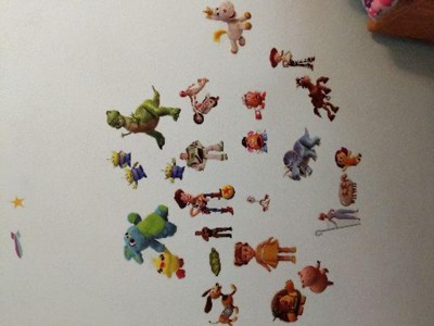 Add favorite characters to your space with Toy Story 4 Peel and Stick Wall Decals by RoomMates. Complete with 38 decals, this wall sticker set is a fun and creative way to transform any room in seconds. To apply, simply peel and stick decals to any smooth, flat surface. Remove, reposition and reuse as often as needed. Created with high quality vinyl that s made to last, walls stay completely safe, and sticky residue is never left behind. It s fast, fun and affordable wall decor at it s best.