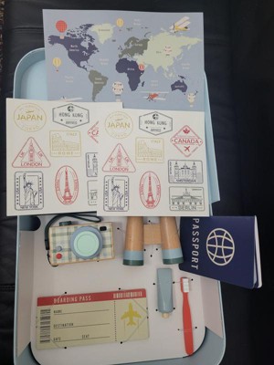 My toddler loves this toy! We got it in preparation for a long trip. It’s very fun with quality wooden toys and stickers. It’s great to talk about going on a trip and packing. He particularly loves playing with the toy camera and binoculars.