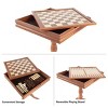 - The two-sided tabletop reverses between a chess board and a backgammon board