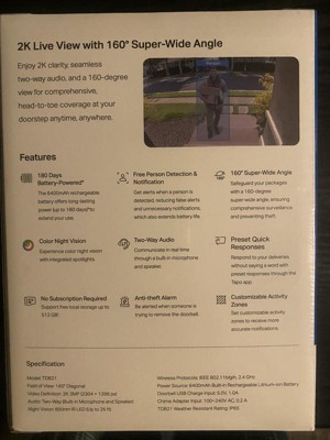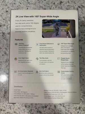 - 2K Clarity Captures All Details: See everything that occurs on your front doorstep in stunning detail thanks to powerful 2K 3MP resolution. Capture crisp license plates, clear facial features, and other crucial details with TDB21's crystal-clear live views.