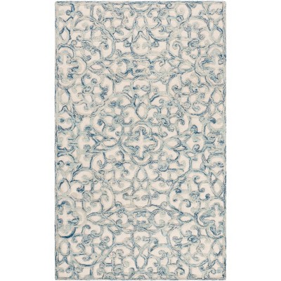 Elevate your living space with the timeless charm of our hand tufted area rug. Measuring 3 feet by 5 feet, this small rectangular piece is perfect for adding a touch of elegance to any room. The soothing blend of blue and ivory complements a variety of color palettes, while the traditional style brings a sense of warmth and sophistication.