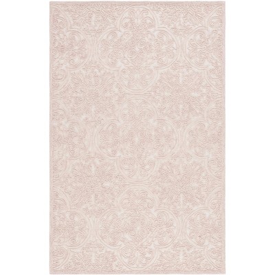 Transform your living space with this exquisite area rug, crafted with care in India. Measuring 3 feet by 5 feet, its compact rectangular shape adds elegance without overwhelming the room. The gentle ivory and pink hues complement a range of interiors, while the hand-tufted weave technique highlights the craftsmanship that goes into each piece. Made with a blend of wool and cotton, infused with latex, this rug provides a soft yet robust surface underfoot. Standing at a height of three eighths of an inch, its unobtrusive profile integrates seamlessly into your decor. Embrace the timeless appeal of traditional style with this beautiful addition to your home.
