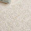 Whether placed in a formal living room, cozy den, or a grandiose entryway, this area rug promises to be a conversation piece while offering warmth and comfort underfoot. Its neutral ivory hue ensures versatility, making it a perfect complement to a wide range of interior decor styles. Discover the blend of tradition and luxury with this timeless handcrafted area rug.