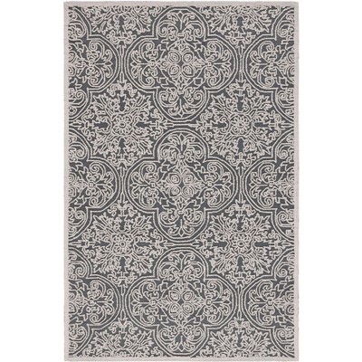 The sophisticated charcoal and ivory palette is gracefully complemented by an intricate pattern that draws inspiration from classic designs, offering both timeless appeal and contemporary chic. The detailed motif adds an element of depth and texture to the rug, making it an ideal centerpiece for both modern and traditional decors.