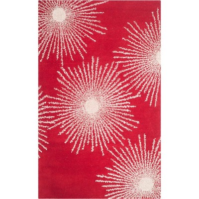 Discover the charm of tradition with our stunning red and ivory area rug. Measuring 5 feet by 8 feet, this medium rectangle rug exudes timeless elegance. Hand tufted with care in India, the blend of 75 percent polypropylene and 25 percent wool presents a harmonious fusion of texture and warmth. Its traditional style adds a touch of refined sophistication to any space, effortlessly complementing your decor.