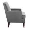 Description The Madison Park Colton Track Arm Club Chair brings a simple and sharp update to your home decor. This accent club chair features a sleek design with track arms and a nailhead trim along the back and sides, adding an elegant touch to the contemporary look. The exposed, solid wood legs provide a sophisticated complement to the upholstery to give this accent chair a stylish allure. A removable high density foam cushion completes the design and offers exceptional comfort to any room in your home. Leg assembly is required. Product Details See below 1 Chair:29"W x 30"D x 35.25"H Seat:29"W x 21.15"D x 19"H Seat Cushion Thickness:5.75" Arm size:21"W x 23.75"H Leg Height:7" Weight Capacity:300lbs Material Frame Composition: Select Hardwoods and Plywood Legs/Finish: Birch Legs with Merlot Finish Fabric Composition: 100% Polyester Cushion: High Density Foam Additional Features: Individually Placed Silver Nail Heads Additional Features: Tight Back, Loose Seat