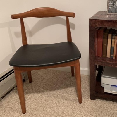 The Tracy dining side chair features a mid-century slightly curved back made of wood and a foam padded seat upholstered in black leatherette. This item is a high quality reproduction of the original. Product Dimensions: 21"W x 31"H x 21"D