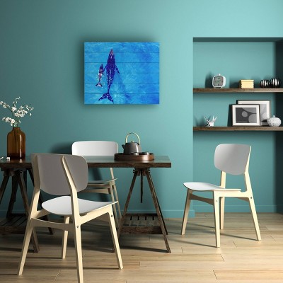 This ready to hang, Wood Slat Art by Trademark Fine Art features a school of fish swimming over a coral reef. Artwork is digitally printed with high end UV inks directly onto natural hardwood planks that have been primed white for a more vibrant, colorful image. This pleasant, real wood piece highlights the texture of the wood creating a truly unique piece of art with no two pieces looking alike. The artwork arrives unframed and is ready to hang with wall hanger already installed to the back.