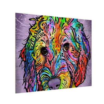 This ready to hang, framed white marker board features a vibrant portrait of a Pitbull. Prominent Colors: White, Black, Light Blue, Pink, Wine, Purple Art and animals. These two passions define Dean, a Brooklyn, New York-based artist who uses vibrant Pop Art colors and bold abstract patterns to give a voice to his favorite subject: animals. Dean grew up in a home filled with art supplies, and from an early age began drawing cartoon characters, which became a great influence in his later work. After studying graphic design and fine arts at the School of Visual Arts and Pratt Institute, Dean began to paint primarily celebrity portraits, but his two Cocker Spaniels became his greatest inspiration. Deans main subjects are dogs, with pit bulls representing the majority of his work. Dean hopes to convey the care and devotion of animal-lovers of every kind, from dogs and cats to horses and beyond. The Framed Markerboard by Trademark Fine Art is a practical yet stylish decor piece for any room of the home! This white board features a fully functional markerboard as well as decorative artwork to add a touch of style. The dry erase marker board is great for jotting down quick notes, grocery lists, reminders, or displaying a decorative inspirational message. This charming piece is made in the USA and comes conveniently ready to hang upon arrival!