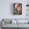 This ready to hang, gallery-wrapped art piece features two large pink flowers over a dark background.Lisa Audit loves the art of decoration, and she uses oil paints, acrylics, and pen and ink to create beautiful pieces of art. She finds inspiration from fine art masters such as Picasso, Manet, Rubens and Cezanne. Lisa lives in Canada with her two teenage daughters, and she creates much of her artwork in a spacious studio inside her home.Giclee (jee-clay) is an advanced printmaking process for creating high quality fine art reproductions. The attainable excellence that Giclee printmaking affords makes the reproduction virtually indistinguishable from the original piece. The result is wide acceptance of Giclee by galleries, museums, and private collectors. Gallery wrap is a method of stretching an artist's canvas so that the canvas wraps around the sides and is secured a hidden, wooden frame. This method of stretching and preparing a canvas allows for a frameless presentation of the finished painting.Whether it's a contemporary, rustic, modern, or traditional style decor, Trademark Fine Art offers a variety of high-quality, carefully built wall art that will surely complement any style. We provide an abundance of art themes that range from fascinating abstracts to breathtaking landscapes, in an assortment of sizes that will certainly bring excitement to any area of your home. From the bedroom to the living room, or even the office, Trademark Fine Art makes professionally handcrafted, ready to hang wall decor that will be admired for years to come!