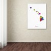 This ready to hang, gallery-wrapped art piece features a colorful watercolor map of Hawaii.Art and design were always Michael's favorite subjects at school. He was fortunate to land a job as a graphic designer at one of London's most prestigious publishing companies after leaving University. After 12 highly enjoyable years Michael Tompsett made the decision to pursue a full-time career creating his own work. The freedom and time to be able to focus solely on his own projects has been a wonderful experience. Although Michael likes to experiment with different styles and subjects, his main focus is on map art. He enjoys looking for unique and interesting ways to depict something which is very familiar. Maps are visual representations of the world we live in, a world which is incredibly diverse. Apart from maps, Michael Tompsett creates urban landmark and cityscape designs.Giclee (jee-clay) is an advanced printmaking process for creating high quality fine art reproductions. The attainable excellence that Giclee printmaking affords makes the reproduction virtually indistinguishable from the original piece. The result is wide acceptance of Giclee by galleries, museums, and private collectors. Gallery wrap is a method of stretching an artist's canvas so that the canvas wraps around the sides and is secured a hidden, wooden frame. This method of stretching and preparing a canvas allows for a frameless presentation of the finished painting.