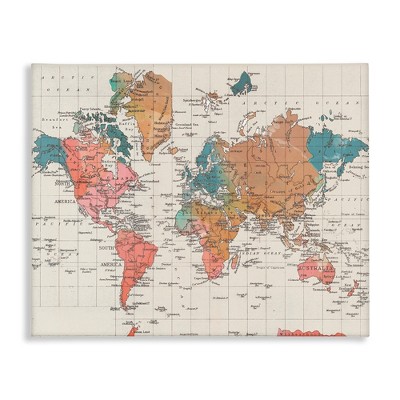 - This Michael Tompsett Map of the World Watercolor wall art by Tompsett is sure to complement any room décor with its Modern & Contemporary style featuring a colorful watercolor world map.