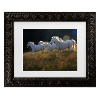 This ready to hang, matted framed Wall Décor Living Room by Trademark Fine Art features white horses running through the center of the frame. that'll look great in any bedroom, kitchen, bathroom, or apartment. Whether it's contemporary, rustic, modern, or traditional style wall art décor, Trademark Fine Art offers a variety of high-quality, carefully built pieces that will surely complement any style with art themes that range from fascinating abstracts to breathtaking landscapes. Each bathroom wall art piece is printed on durable cotton poly blended canvas using Giclee, a process for creating high-quality fine art reproductions that are nearly indistinguishable from the original piece.