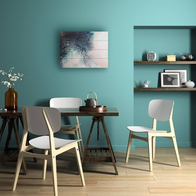 The natural hardwood planks of this wood wall decor are prepped with white primer before printing for vibrant color