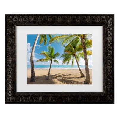 This ready to hang, matted framed Wall Décor Living Room by Trademark Fine Art features a view of the beach through palm trees. that'll look great in any bedroom, kitchen, bathroom, or apartment. Whether it's contemporary, rustic, modern, or traditional style wall art décor, Trademark Fine Art offers a variety of high-quality, carefully built pieces that will surely complement any style with art themes that range from fascinating abstracts to breathtaking landscapes. Each bathroom wall art piece is printed on durable cotton poly blended canvas using Giclee, a process for creating high-quality fine art reproductions that are nearly indistinguishable from the original piece.