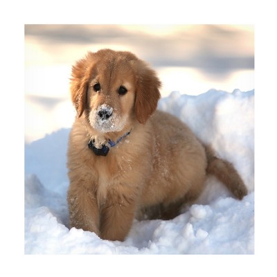 This Stephen Goodhue Golden Puppy And Snow Ii canvas art by Art Licensing International is sure to complement any room décor with its Modern & Contemporary style featuring a depiction of a small dog standing in the snow.