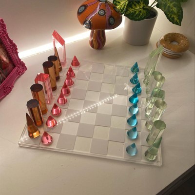- This functional acrylic chess board set is a unique décor piece and a playable strategy game that comes complete with a full set of 32 chess pieces