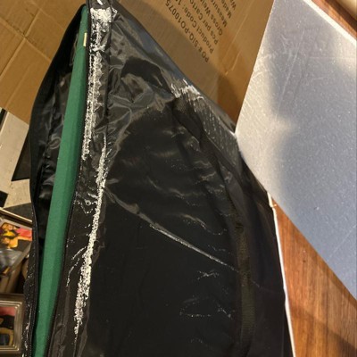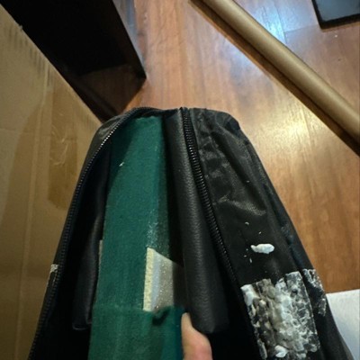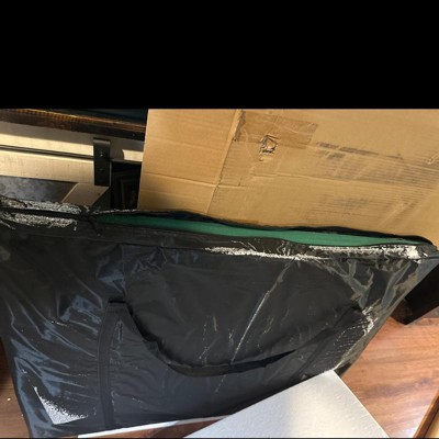 I ordered this item twice. The first time it was delivered in the rain so I thought the styrofoam packing soaked into carrying case so I returned it and reordered but the second one came the exact way. Not only does the carrying case have styrofoam melted into the cover the padded rim of the table top is lifting off and there is foam sticking out of one side. Poor quality for the price. I purchased at regular price and noticed it’s on sale now and won’t be surprised if on clearance with all the returns they will be getting.