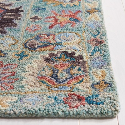 Traditional Floral Medallion Border Indoor Runner or Area Rug, Blue/ Cream, 2'7"x8' - Blue Nile Mills