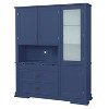 Elevate your kitchen with the Traditional Freestanding Buffet with Hutch—a perfect blend of timeless style and maximum functionality! Crafted from premium P2 Grade MDF, this pantry cabinet offers ample storage: 3 smooth drawers, a door shelf, and 4 adjustable shelves (supports up to 200lbs each) to organize dinnerware, small appliances, or food. The classic Shaker design, vintage handles, and frosted tempered glass door add sophistication, while the built-in microwave workstation (with wire hole for cord management) makes meal prep a breeze. Features 180-degree hinges for easy access, sliding drawers for quiet use, and 2 anti-tipping devices for safety. Ideal for modern, farmhouse, or traditional kitchens—keep your space clutter-free and stylish!