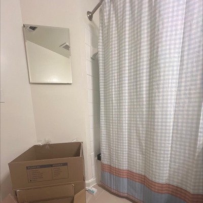 - Gingham-print shower curtain