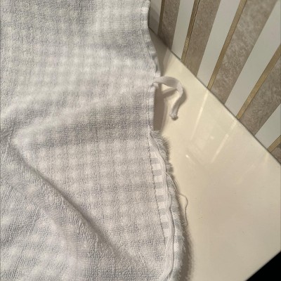 Unfortunately, it looked like the towel hanger was tacked on thoughtlessly. The gingham towel weave was not pronounced.