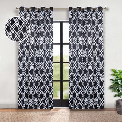 Traditional Medallion Jacquard Room Darkening 52" x 96" Curtain 2-Panel Set with Grommet Topper, Black - Blue Nile Mills