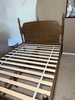 I have had this bed for just over a month, and it is not safe to sleep on. The bed has collapsed twice in the middle of the night. The legs of the bed are screwed directly into the wood headboard/footboard with a single screw, which slowly strips the wood away creating an unstable base. The middle supports (also attached with a single screw) also frequently fall off. I have attempted to contact the manufacturer multiple times by phone and email with no response. This product is poorly made, poorly executed, and unsafe. Do not waste your money.