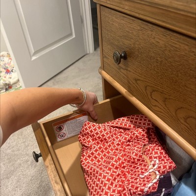 This dresser has a nice aesthetic and could work well in a nursery or smaller space. However, the overall size is compact, and the drawers are shallow, so it doesn’t hold a large amount of clothing. It’s best suited for light storage rather than a full wardrobe.
