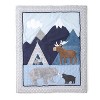 - ADORABLE MOUNTAIN BEAR THEME: You will think you are a fun mountain camping adventure with a bear, her cub and a friendly moose with our adorable moutain bear look. The fitted sheet is white arrows on a blue ground, or switch it out with the one featuring