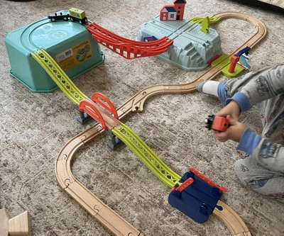 A: We have this train and also an IKEA wooden train and the pieces don’t fit together very well. The IKEA connectors are slightly bigger and you have to pound on them to get the two brands to connect.