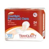 Tranquility Personal Pads offer superior absorbency while you are sleeping or going about your day. Rest easy knowing you are getting the best protection for adult incontinence. Tranquility Personal Care Pads have three levels of absorbency, in three sizes to conform to individual needs. The soft peach core and two embossed channels direct fluid into the product, providing skin dryness and odor reduction while protecting delicate skin from the effects of wetness. Gentle elastics form a cup shape that enables a secure fit. These pads have a moisture-proof backing and adhesive strip so they can be worn in regular underwear. Latex-free.
