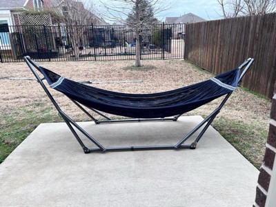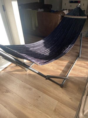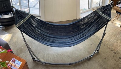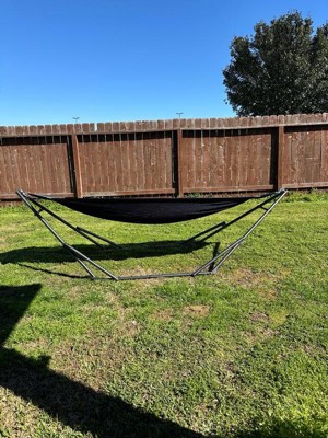 [This review was collected as part of a promotion.] This is a very sturdy hammock. My two complaints are 1) one of the stand parts keeps popping out of place and 2) it’s very heavy, so not easily portable.