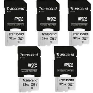 Five Transcend 32GB MicroSD 300s 100MB/s Class 10 Micro SDHC Memory Card with SD Adapter