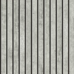 A full roll of this product is 20.5 inches wide and 216 inches long. A full roll can cover up to 30.75 square feet depending on the design match and pattern repeat. A sample of this product is 8 inches by 11 inches. This wallpaper features a sleek, vertical slat design that mimics the appearance of a concrete wall. The evenly spaced, uniform slats in shades of grey create a clean, modern look with subtle texture that enhances the industrial aesthetic. The consistent thickness and vertical arrangement of the slats add a sense of height and structure, making it an ideal choice for creating a bold, contemporary atmosphere.