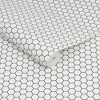 A full roll of this product is 20.5 inches wide and 216 inches long. A full roll can cover up to 30.75 square feet depending on the design match and pattern repeat. A sample of this product is 8 inches by 11 inches. Add an urban feel to your home with our hexagon lattice wallpaper with black hexagonal outline detail. This simple yet sophisticated design is sure to transform any living space. Bring the tile look to you home without all the hassle of the real thing. This Peel & Stick design is the perfect tool for any DIY project. Straight match with a 1.09 inch pattern repeat