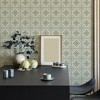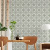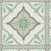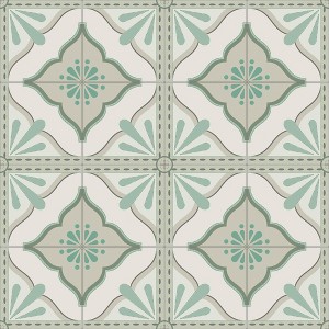 A full roll of this product is 20.5 inches wide and 216 inches long. A full roll can cover up to 30.75 square feet depending on the design match and pattern repeat. A sample of this product is 8 inches by 11 inches. Large Tile Green showcases a symmetrical, vintage-inspired tile pattern with intricate floral and geometric motifs. Each square is adorned with a central decorative element, surrounded by delicate ornamental details that create a harmonious, repeating design. The balanced combination of curves and structured lines gives it a classic and elegant appearance, suitable for various interior styles.