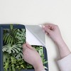 A full roll of this product is 20.5 inches wide and 216 inches long. A full roll can cover up to 30.75 square feet depending on the design match and pattern repeat. A sample of this product is 8 inches by 11 inches. This design is the perfect way to add paneling to your home without the hassle! This tropical paper will bring in the freshness of natural green leaves encased by the timeless blue panel. This paper features a 3D effect that will make your decor pop. Our peel and stick wallpaper is perfect for renters and redecorators. Offers a smooth, untextured finish. Straight match with a 20.9 inch pattern repeat.