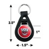 - QUALITY MATERIAL: Our durable round keychain is crafted from leather with a glossy resin-topped emblem featured design shown on one side. Approximately 1.5" (3.8cm) x 2.5" (6.4cm) in overall size, emblem is 1" (2.5cm)..